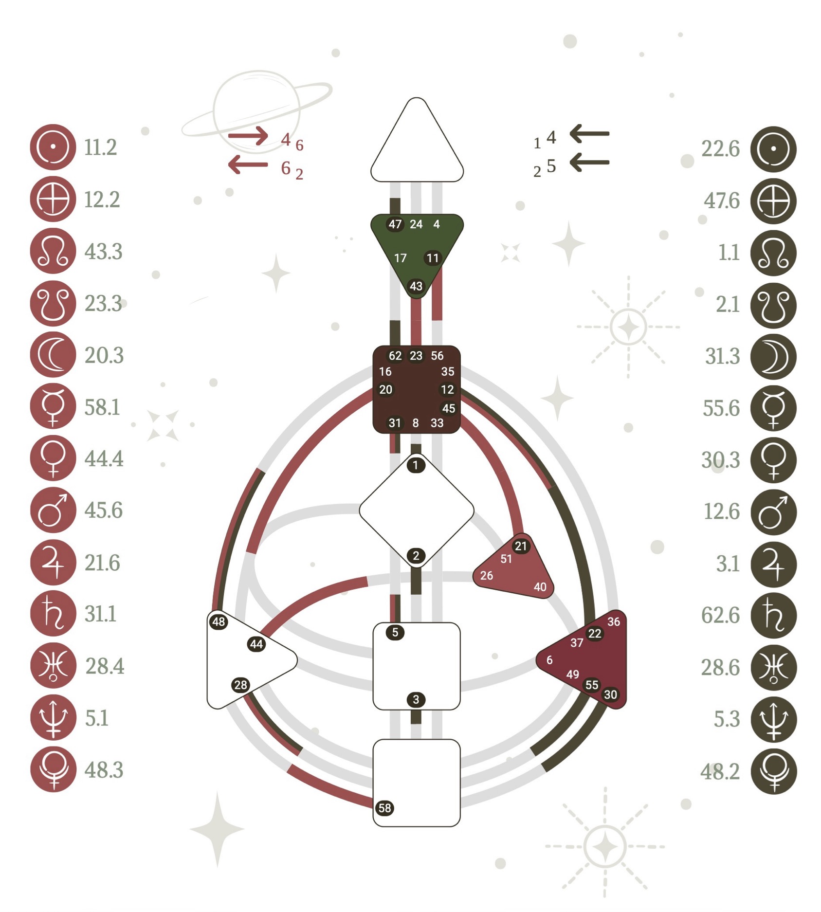 Your chart is calculated to the minute. Even small differences in birth time can produce meaningfully different designs — which is why precision matters when you pull your chart.